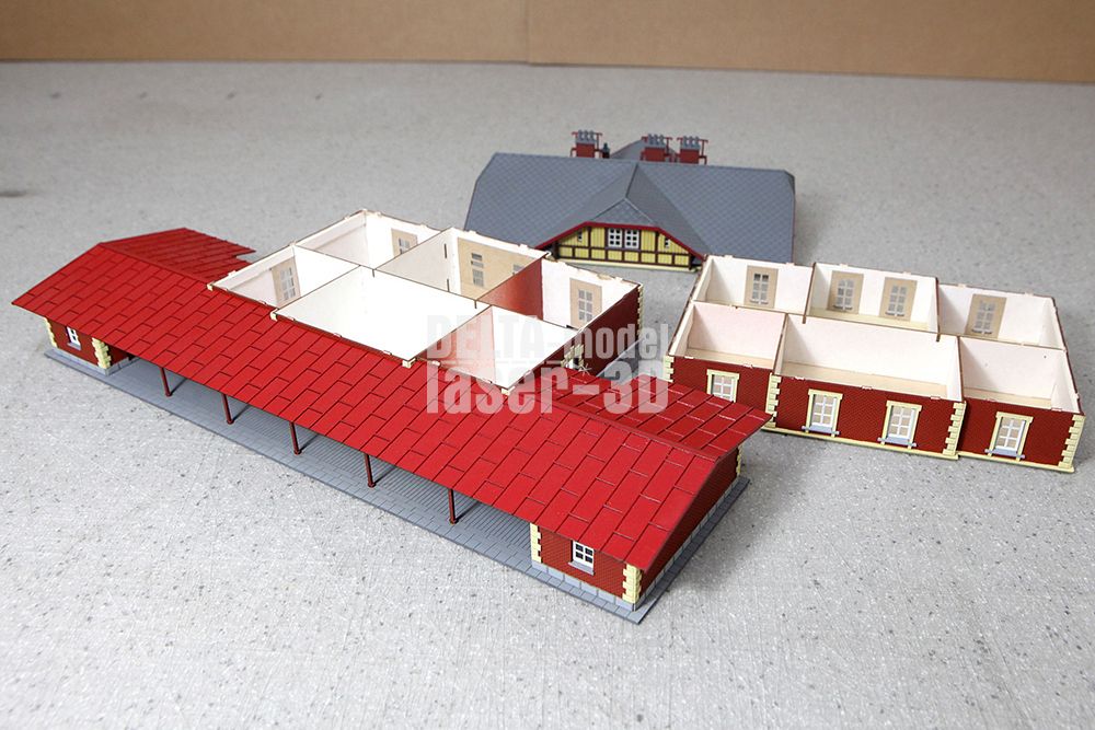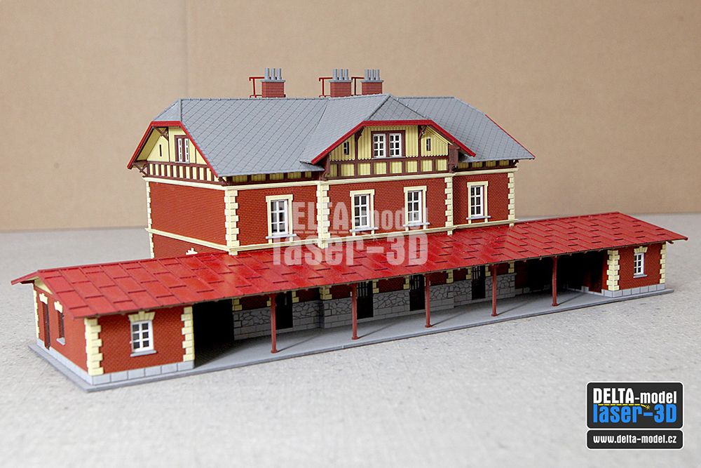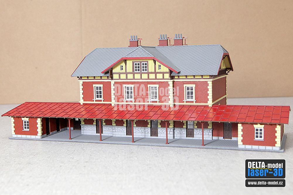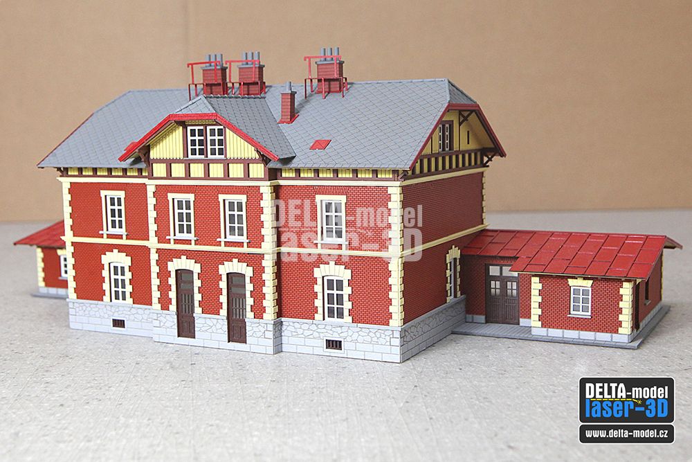Tato stavebnice z naší produkce je největší a má mnoho detailních dílů - dvojité špaletové okna (na fotografiích jsou ještě staré jednodušší verze), fasádní prvky. Samozřejmostí jsou díly z 3D tisku (komíny, okapy, hřebenáče).