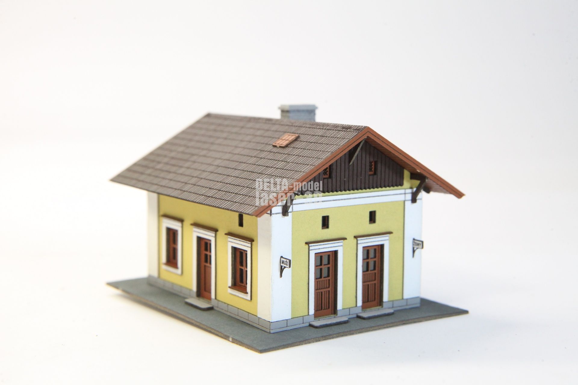 - Vyrobeno technologií laser cut a 3D tisk. Materiál: papírové kartony, drobné doplňky SLA 3D tisk